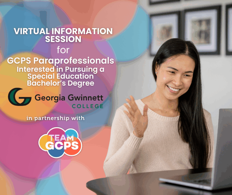 GCPS Paraprofessionals are invited to learn more about obtaining a Bachelor’s Degree in Special Education with Georgia Gwinnett College. GCPS & GGC have partnered to develop a degree pathway that you can complete while working as a district para!